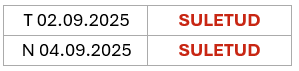 Elva Haigla röntgeni lahtiolekuaegade erisus septembris.
